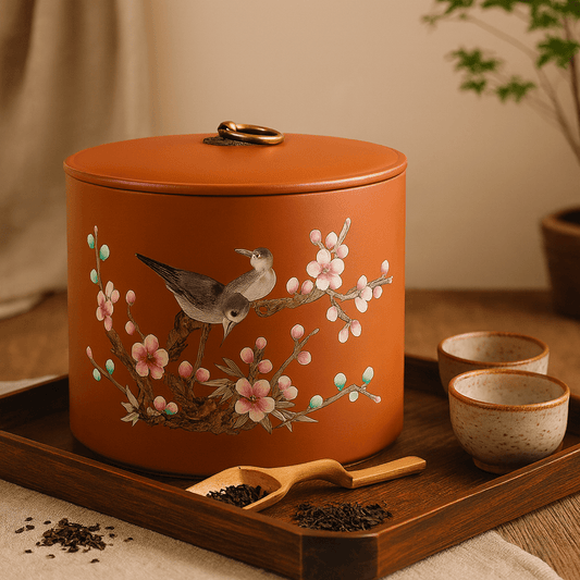 Boite à thé étanche en fer motifs floraux