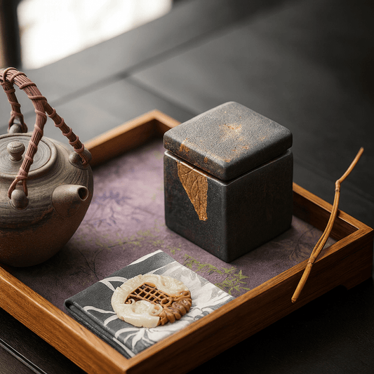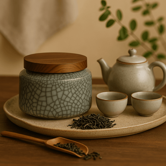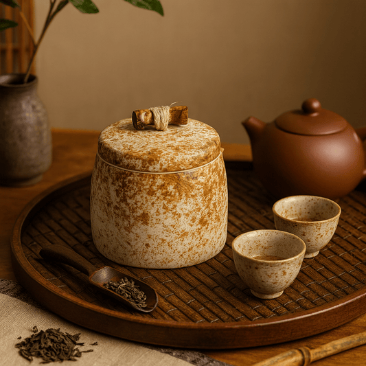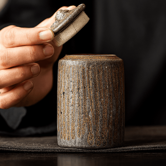 Boîte à thé japonaise minimaliste en céramique texturée