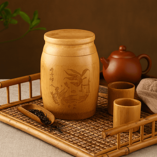Boite à thé bambou style chinois gravure oiseau