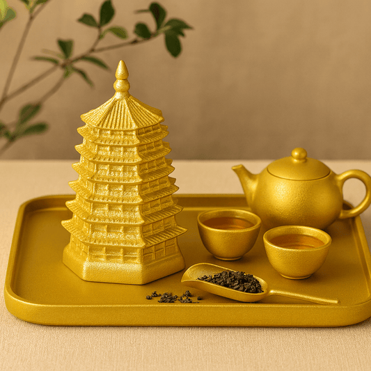 Boite à thé céramique pagode dorée style chinois