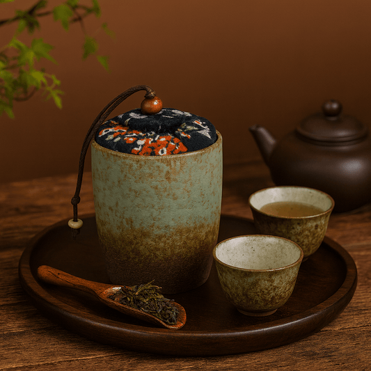Boîte à thé étanche en céramique wabi sabi 170ml avec couvercle tissu