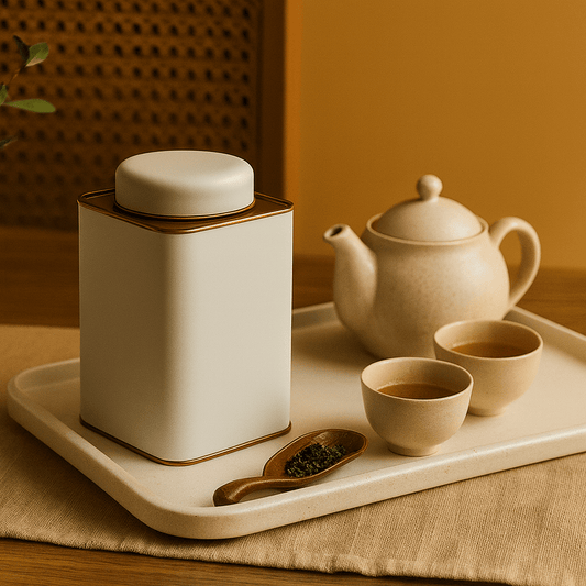 Boite à thé céramique carrée feuille dorée 100ml