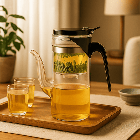 Utilisez une eau entre 70°C et 90°C, selon le type de thé. Privilégiez des feuilles entières pour un goût plus riche et observez leur danse dans l’eau — l’un des plaisirs uniques des théières en verre. Un filtre intégré vous permet une infusion nette sans effort.