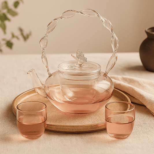 Chez Théièrea, nous choisissons du verre borosilicate de haute qualité, résistant aux températures extrêmes. Nos finitions sont faites avec soin pour allier esthétique et durabilité. Chaque pièce incarne notre engagement : offrir des objets utiles, élégants et conçus pour durer.