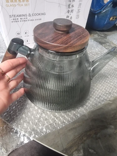 Théière en verre borosilicate avec poignée bois – 1000 ml élégance pour infusion parfaite !