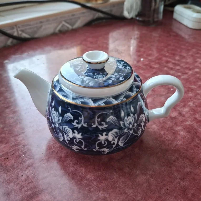 Élégance florale et sérénité bleutée : la théière chinoise Yunhua en porcelaine (200ml) !